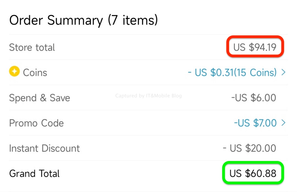다른 분들은 어떻게 할인을 받으셨나 모르겠지만 저는 지난 주말 이번 할인 행사 포인트 중 하나였던 30달러 구매 시 3달러 할인으로 67달러 정도를 맞춰뒀었고요. 여기에 추가 할인이 없는 27달러짜리 아이템을 하나 더 포함해서 할인 전 최종 금액은 94.19달러였습니다.