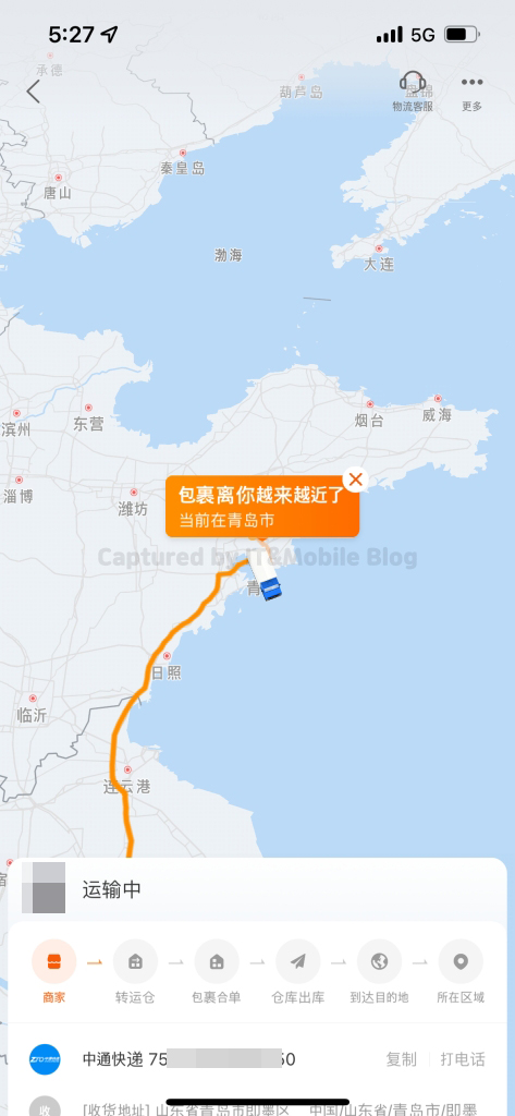 직배송을 지원하는 상품을 합배송으로 주문을 하면 칭다오 어딘가에 있는 물류센터에 모아서 지금은 웨이하이나 옌타이를 통해 우리나라까지 배송이 되는 거죠!