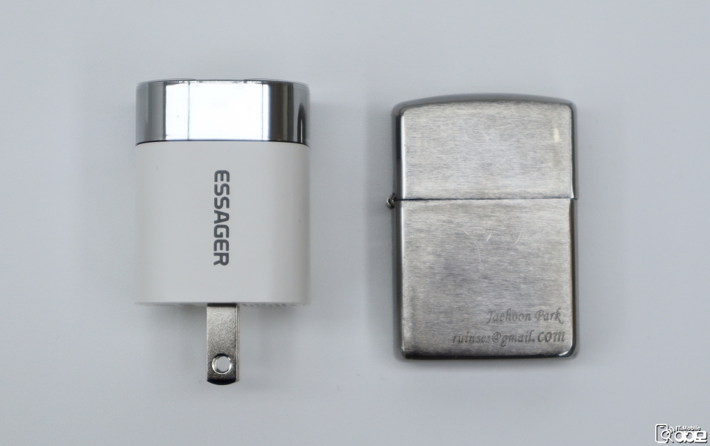 작은 종이 상자 안에 들어있는 충전기 하나, 크기는 지포 라이터보다도 더 작은 크기였지만 GaN(질화갈륨) 소재를 사용한 덕분에 33W 출력이 가능한 걸 테고요.