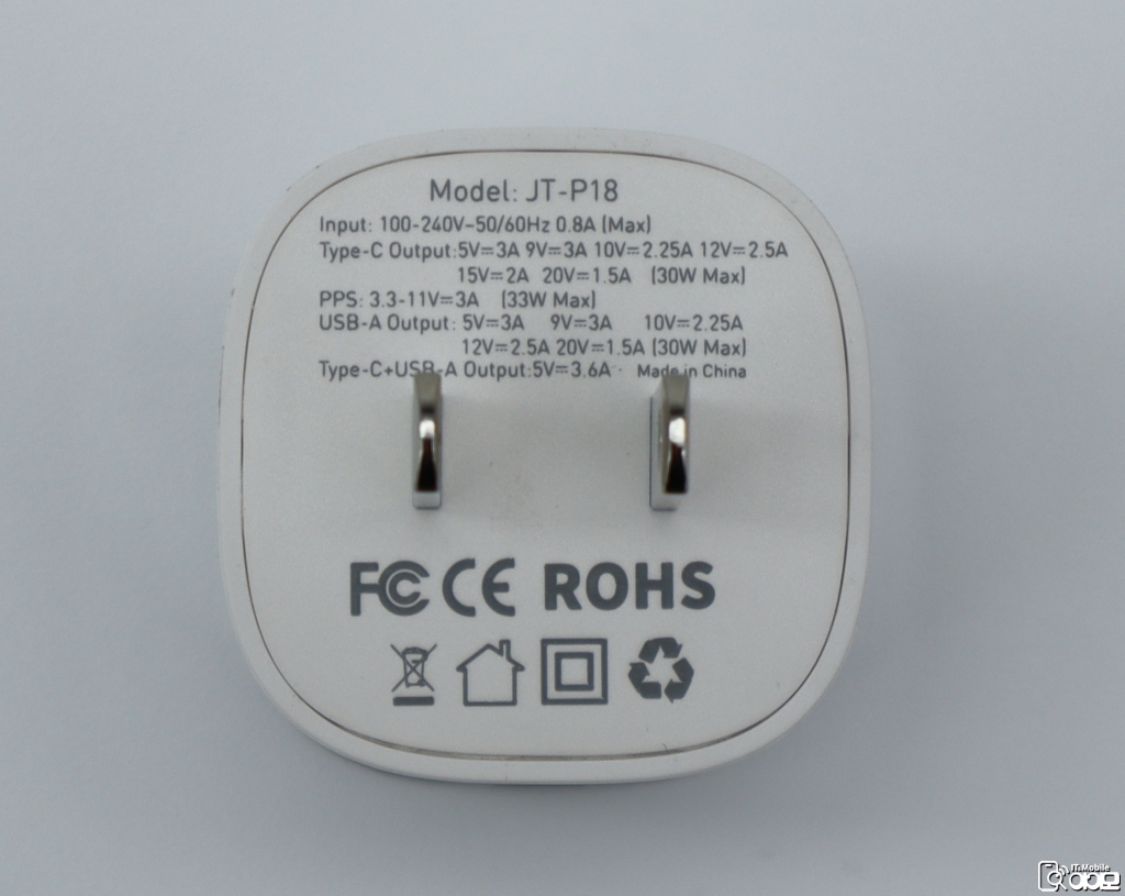 최대 출력 33W는 USB-C나 USB-A 둘 중 하나만 사용할 때 가능한 출력이고, 두 포트를 동시에 사용하게 되면 5V 18W가 최대 출력이라는 점이 아쉽지만 작은 크기를 고려하면 충분히 수긍할만한 스펙입니다.