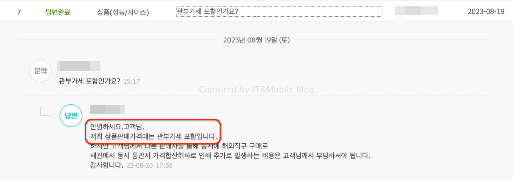 구매자가 문의를 하면 관부가세 포함이라고 답변을 달고는 있지만 실제 수입신고 내역을 보면 150달러 이하로 절묘하게 맞춰둔 걸 확인할 수 있고요.