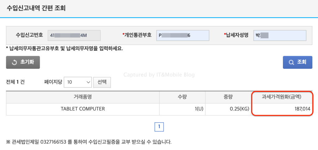 작년부터 태블릿 제품군은 150달러 이하 제품이라도 일반 통관 대상으로 수입신고를 거쳐야 하는데 수입 신고가 진행되는 것만 보고 부가세를 납부하겠거니 생각하시면 오산이라는 겁니다.